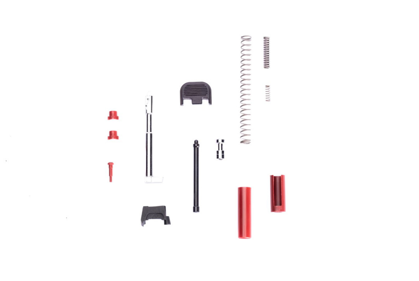 - PF-Series™ Striker Channel Liner, Striker Spacer Sleeve, Striker Spring Cups (2), and Extractor Depressor Plunger Bearing (All available in Red)